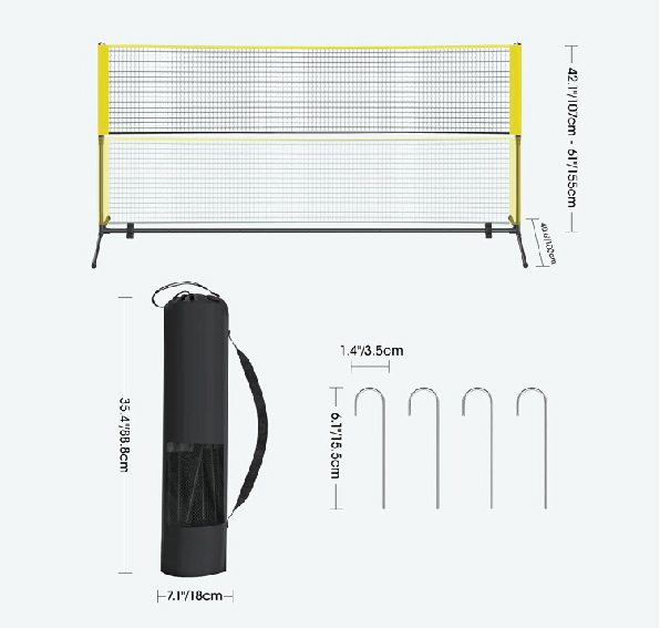 便携式匹克球挡网便携式匹克球挡网 轻便易携,快速组装,耐磨牛津布网面搭配铝合金支架,高度可调(76-91cm),标准3米宽度,稳固防倾倒,适合训练和娱乐,室内外通用。收纳方便,随时随地享受匹克球乐趣。